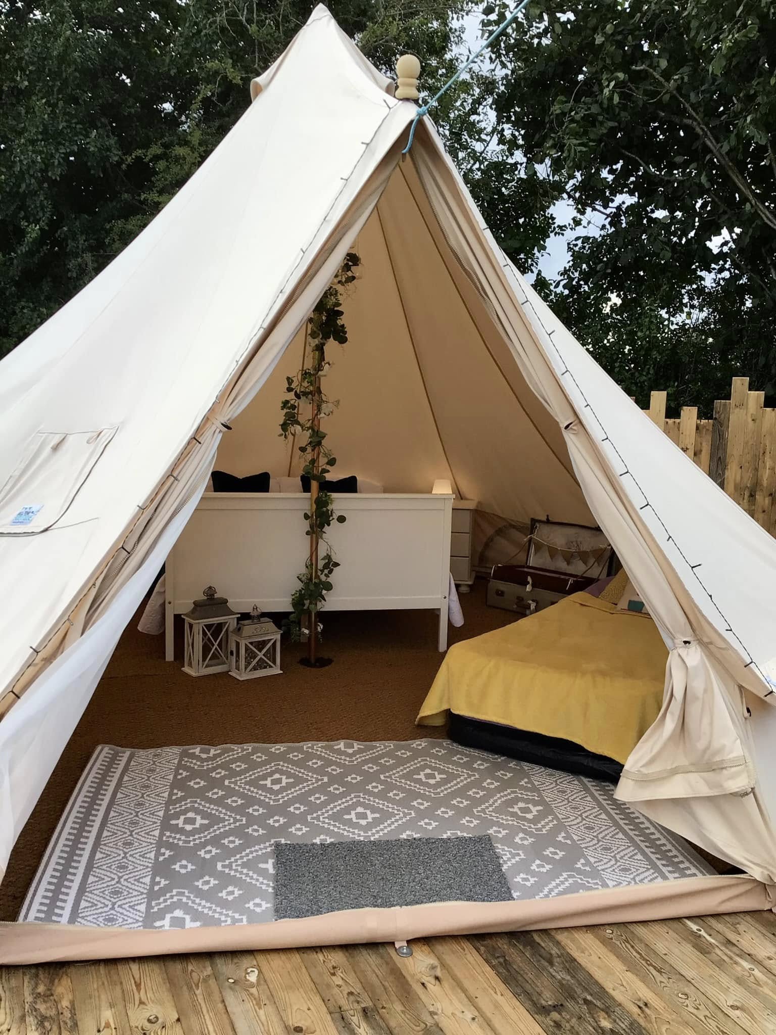 The result is Casa Bella — a cosy, characterful bell tent that captures the spirit of traditional camping, but with a sustainable twist and a dash of countryside elegance.