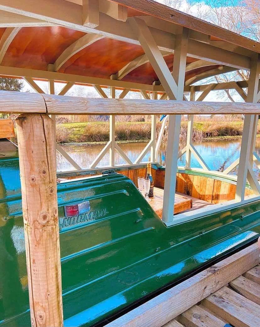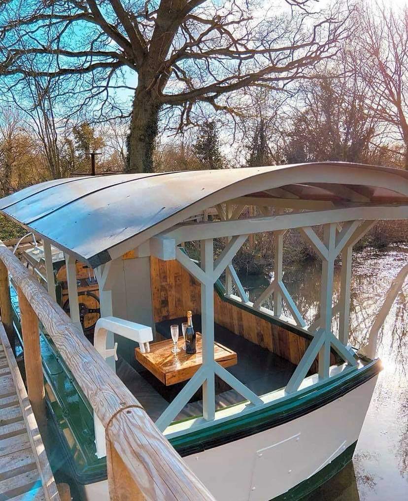 Always on the lookout for quirky projects, we stumbled across an old river boat tucked away in a barn back in 2020. Seeing its potential, we set about transforming it with a vision in mind — creating a unique, moored floating pod where guests can truly switch off and reconnect with nature.