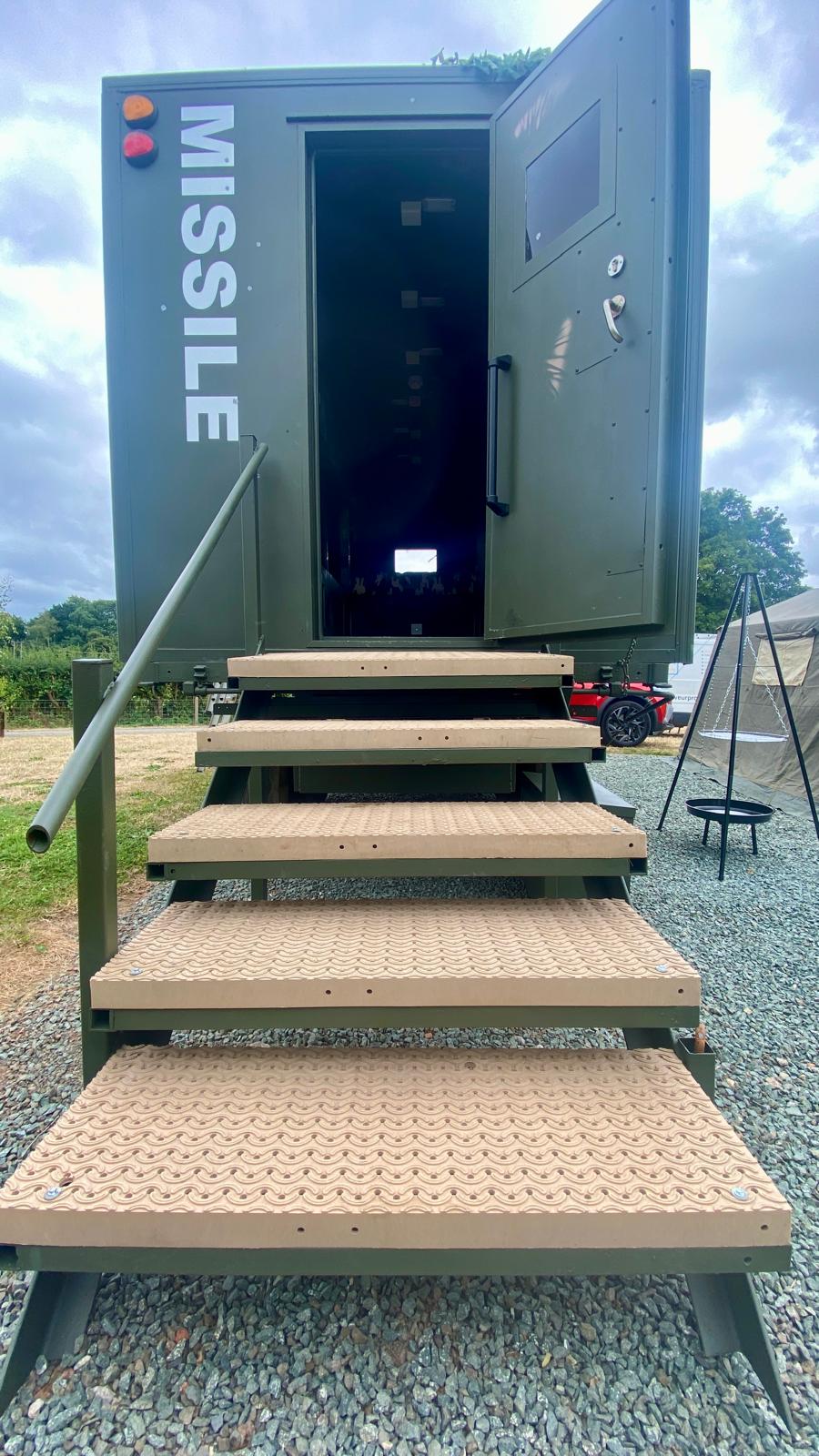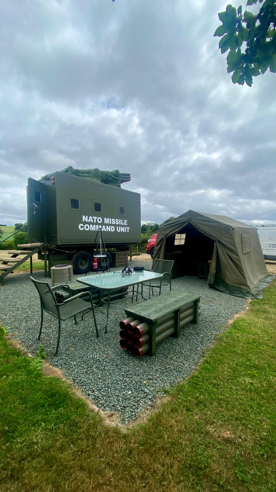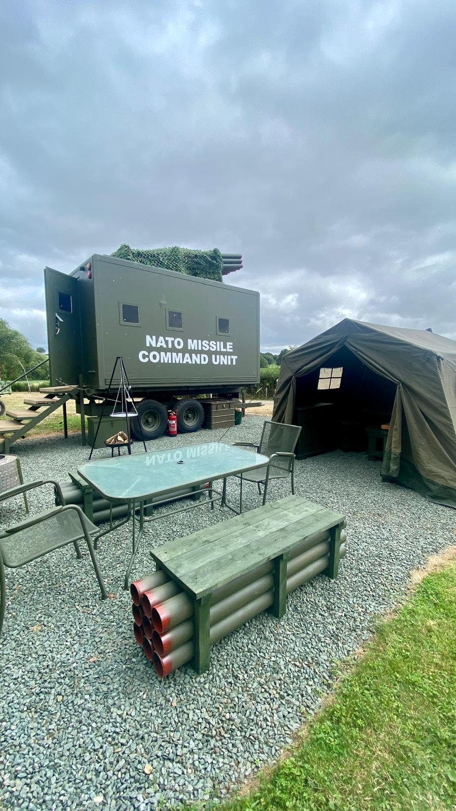 Missile Command is our action-packed, military-themed glamping retreat built for guests ready to report for relaxation duty. Sleeping up to six — with four singles and a comfortable double bed — it’s perfect for families, friends, or your very own squadron of adventurers.